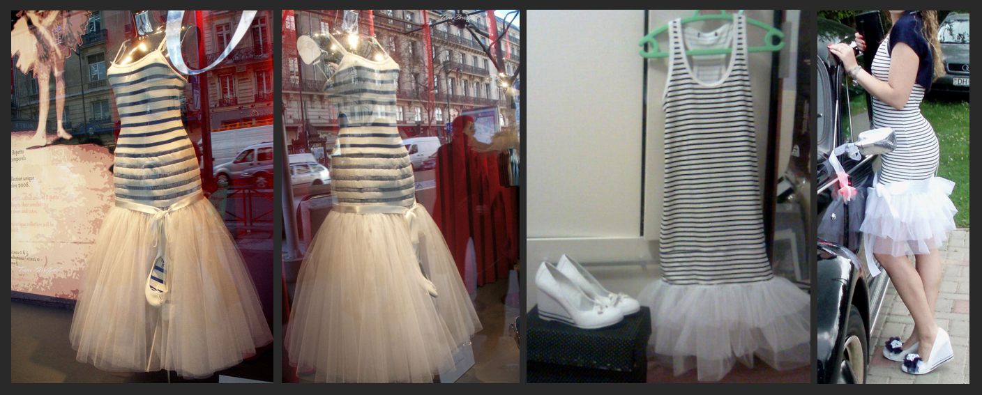 Inspired by this dress, accidentally found on the internet, there was a bit different dress, made of the usual long tank tops and tulle.